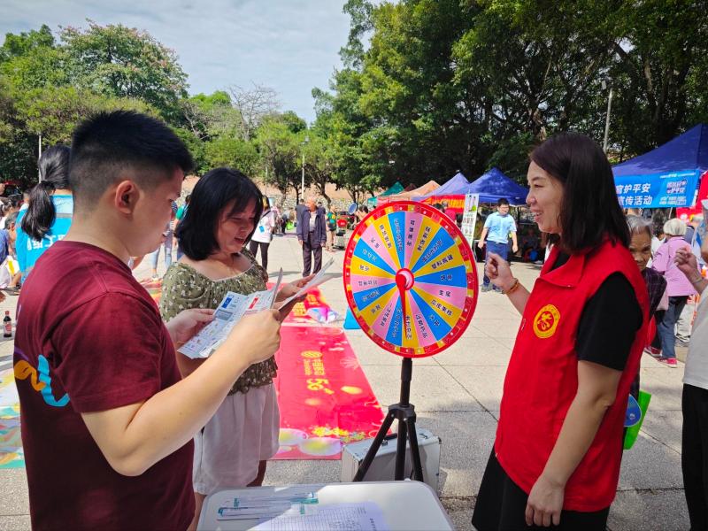 活动现场设置了趣味游戏、DIY区、便民服务、理疗护理四大板块,兼顾不同年龄层需求,让每个人都能找到属于自己的乐趣。在趣味游戏区,“投壶献礼”“玉兔套圈”“时来运转”等游戏前也排起长队,大人小孩齐上阵,欢呼声、加油声此起彼伏,现场变成了欢乐的海洋。参与游戏获胜的居民,还能获得生活用品。 DIY区则成为活动的美食分享区“棉花糖”和“品汤圆”,居民们和小朋友排长龙吃的津津有味,在甜味的碰撞中拉近了心与心的距离,感受到团圆温暖的文化内涵。在专业老师的指导下,非遗漆扇、手工制作灯笼,小朋友和大人们体验了传统手工的乐趣。便民服务区延续了社区服务的温度,社区医院的医护人员为居民免费测量血压、提供健康咨询,志愿者理发师为老年人修剪头发,社区工作人员则现场解答社保、医保、禁毒等政策问题,让居民在欢度节日的同时,感受到实实在在的关怀。